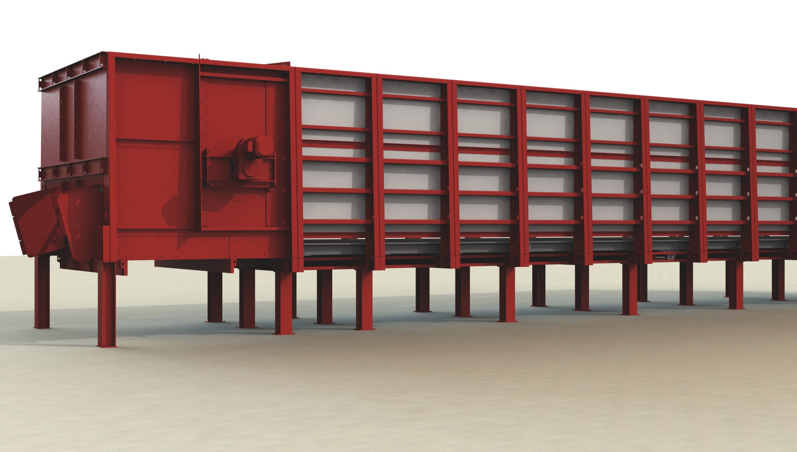 Bunkier Westeria MovingFloor służy do równomiernego dozowania luźnego materiału na linię do sortowania odpadów, recyklingu lub odzysku – może też z powodzeniem być zastosowany przed prasą belującą jako magazyn odpadów do belowania. Rozwiązanie to zapewnia ciągłą stabilną pracę całego układu przenośników i urządzeń linii bez dużego zaangażowania obsługi. Bunkier działa na zasadzie ruchomej podłogi, która podaje materiał bezpośrednio na podajnik lub na rolki dozujące gwarantujące równomierne podawanie. Rolki mogą być wyposażone w odpowiednie haki, które służą nie tylko do rozluźniania dozowanego materiału, ale również do rozdzierania worków foliowych. Do bunkra załadowczego materiał można podawać za pomocą ładowarki bądź chwytaka, ale w przypadku odpowiedniego posadowienia bunkra nawet bezpośrednio ze śmieciarki lub innego pojazdu – samochód może wjechać do bunkra w celu rozładowania swojej zawartości, co minimalizuje koszty obsługi i sprzętu. Bunkier można całkowicie zapełnić materiałem, co gwarantuje najekonomiczniejszą pracę linii oraz najlepsze efekty podawania. Bunkry MovingFloor oferowane są wersji wolnostojącej, gdzie ściany i podstawa umieszczone są jako samonośna konstrukcja na posadzce lub w wersji betonowej, gdzie ściany i podstawa jest wylewana z betonu zbrojonego a do środka takiej konstrukcji wmontowuje się system ruchomej podłogi.